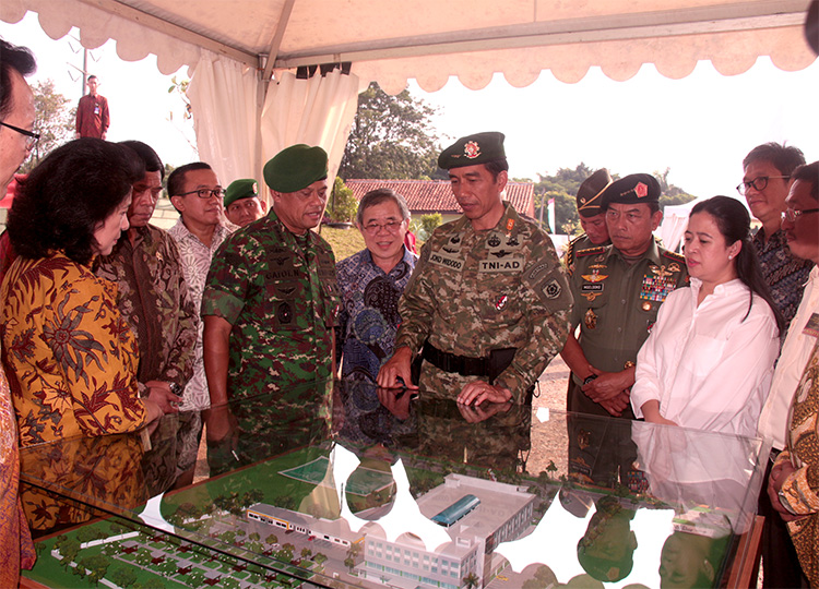 佐科維總統(tǒng)在講話中表示,很高興參加陸軍總醫(yī)院奠基儀式。他說(shuō),以前陸軍總醫(yī)院雖然在市中心,但是規(guī)模小。現(xiàn)在雖然在郊區(qū),但是規(guī)模大了很多,建成后可以為陸軍、特種部隊(duì)和當(dāng)?shù)厝嗣裉峁└玫尼t(yī)療服務(wù)?,F(xiàn)在只是第一家,以后我們預(yù)計(jì)在全國(guó)27個(gè)軍區(qū)都要建設(shè)這樣的醫(yī)院。