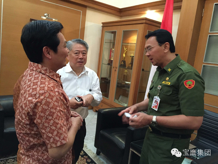 鐘萬學省長用流利的客家話對古少明主席一行的到來表示歡迎,并再次稱贊在昨天(5月31日)舉行的印尼慈濟醫(yī)院奠基儀式。古少明主席對鐘萬學省長百忙抽空接見表示深深的感謝,并向鐘省長匯報了寶鷹集團會在印尼投資發(fā)展基礎設施、智慧城市和智能家居建設以及互聯(lián)網(wǎng)電商等項目情況。鐘省長同時介紹了雅加達在交通、醫(yī)療、安防等領域打造智慧城市的規(guī)劃以及2018年在雅加達舉行的亞洲運動會場館建設籌備工作計劃等。鐘省長期待寶鷹集團在印尼大展身手,并指出政府會給予大力的支持。