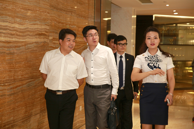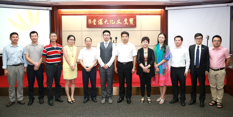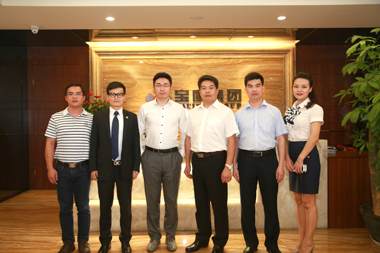參觀后合影留念(左三為鄭峻峰,右三為董事長古少波,右二為副總裁陳龍,左二為總裁助理吳義課)