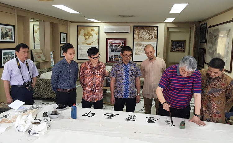 6月22日,周國城主席在古樸副總裁和印尼寶鷹工作人員的見證下,為印尼寶鷹題字,一起祝福印尼寶鷹事業(yè)飛黃騰達。6月23日,印尼INTILAND地產(chǎn)集團董事長吳端華設宴接待了周國城主席和古樸副總裁一行,暢敘了與寶鷹的合作情誼。周國城主席在宴席上向吳端華董事長贈送了自己的手卷作品。之后,周國城主席和古樸副總裁在熊德龍董事長和吳端華董事長的陪同下,拜訪了印尼國家安全部部長Stiyoso,并贈送了周國城主席的手卷作品。