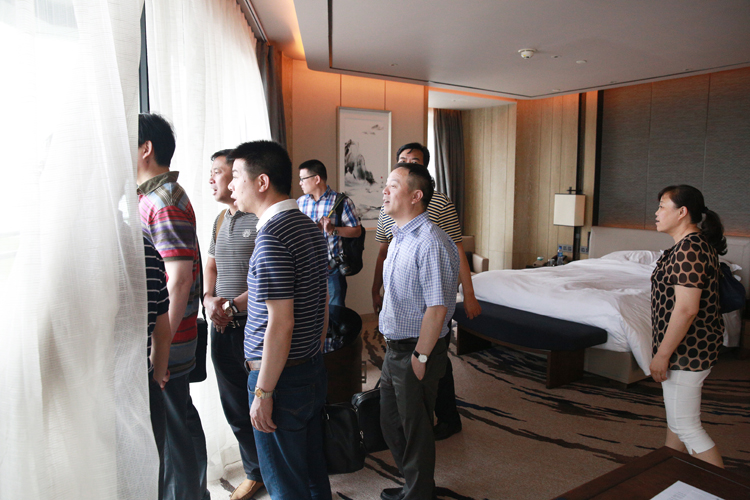 在參觀深圳蛇口希爾頓南海酒店時,考察團一行在莊西湖副總裁及技術負責人的陪同下,了解了該項目的設計風格和施工特點??疾靾F一行對深圳蛇口希爾頓南海酒店的裝飾贊不絕口的同時,特別注意裝飾的施工細節(jié)、材料,雙方不時就相關問題展開討論,交流切磋,不亦樂乎。