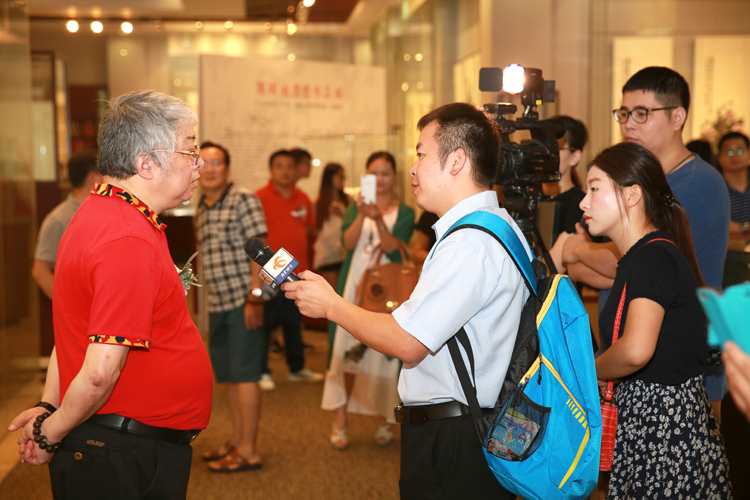 周?chē)?guó)城主席在展覽上接受媒體采訪