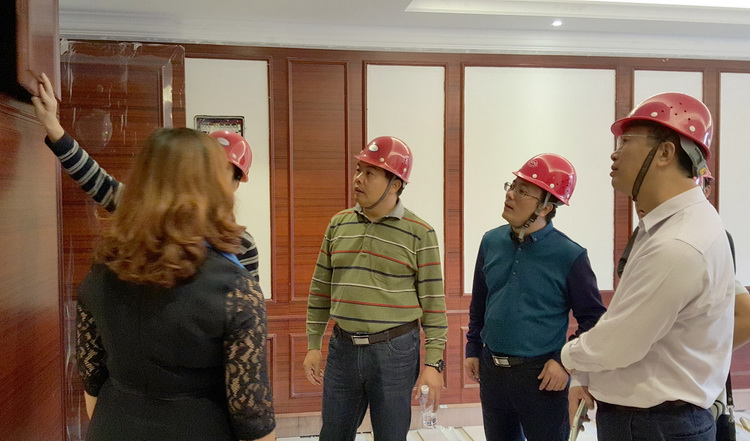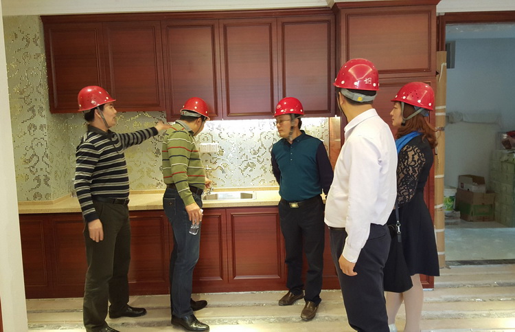 古少波董事長一行查看裝飾施工中的樣板間