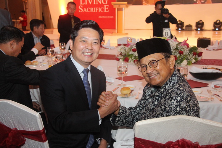 9月23日,古少明主席受邀出席了在雅加達(dá)舉辦的翁俊民博士新書《奉獻(xiàn)》發(fā)布會。翁俊民博士是印尼著名的華裔企業(yè)家和慈善家,旗下產(chǎn)業(yè)覆蓋銀行、醫(yī)院、免稅店及媒體等?!斗瞰I(xiàn)》一書是印尼著名作家Albert hiene Endah專訪翁博士后寫成的作品,由著名出版商Gramedia出版,書中詳細(xì)介紹了翁俊民博士無私奉獻(xiàn)的一生。古少明主席在發(fā)布會上會見了印尼第三任總統(tǒng)哈比比、印尼地方理事會主席伊爾曼·古斯曼、印尼國會副議長希達(dá)亞特以及部分印尼商界領(lǐng)袖,他們熱烈歡迎古少明主席來印尼參加第十三屆華商大會,與世界華商菁英共商發(fā)展大計。并充分肯定了印尼寶鷹建設(shè)集團(tuán)在當(dāng)?shù)氐陌l(fā)展,盛贊古少明主席緊跟中國國家戰(zhàn)略構(gòu)想“一帶一路”,深入布局海外市場。