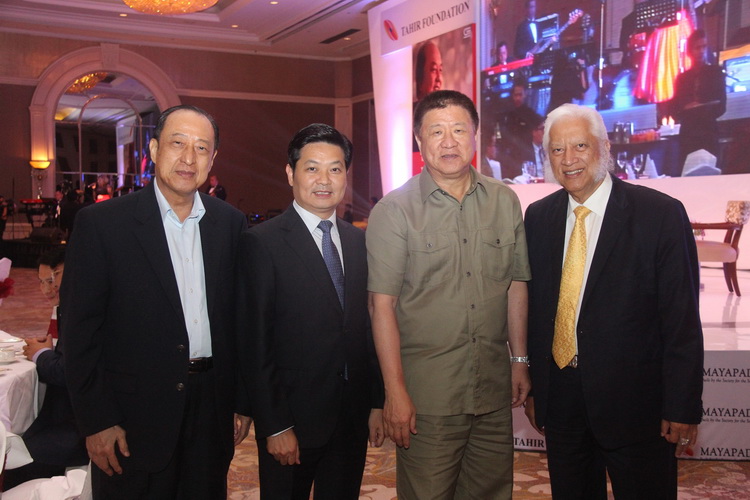 古少明主席與印尼地產(chǎn)大亨、安達(dá)集團(tuán)董事長郭再源(右二)以及印尼熊氏集團(tuán)董事長熊德龍(右一)