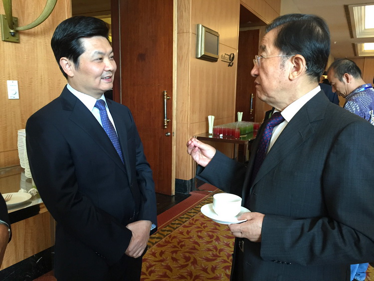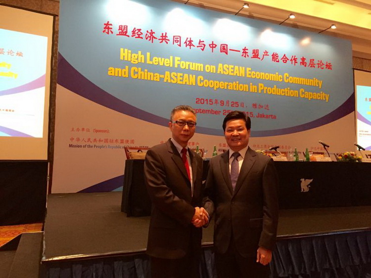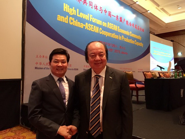9月25日,古少明主席受邀出席了在雅加達(dá)舉辦的東盟經(jīng)濟(jì)共同體與中國—東盟產(chǎn)能合作高層論壇。該論壇由中國駐東盟使團(tuán)、中國經(jīng)濟(jì)社會理事會、東盟基金會、印尼工商會館和印尼中國商會共同主辦,各國駐東盟代表及來自東盟和中國的企業(yè)家、學(xué)者等約200人出席了論壇。古少明主席在東盟經(jīng)濟(jì)共同體與中國—東盟產(chǎn)能合作高層論壇上會見了中國經(jīng)濟(jì)社會理事會副主席賈治邦、中國駐東盟大使徐步、國信集團(tuán)董事長翁俊民等人。賈治邦聽聞古少明主席將在華商大會發(fā)表和東盟合作有關(guān)話題的演講后表示,東盟將于今年底建成經(jīng)濟(jì)共同體,實現(xiàn)區(qū)域內(nèi)貿(mào)易、服務(wù)、資本和人員的自由流通,因此積極探討國際產(chǎn)能合作,探索新模式,培養(yǎng)經(jīng)濟(jì)增長點,意義重大,寶鷹應(yīng)珍重這一時機(jī),在“一帶一路”的戰(zhàn)略背景下發(fā)揮優(yōu)勢,和東盟各企業(yè)合作共贏。