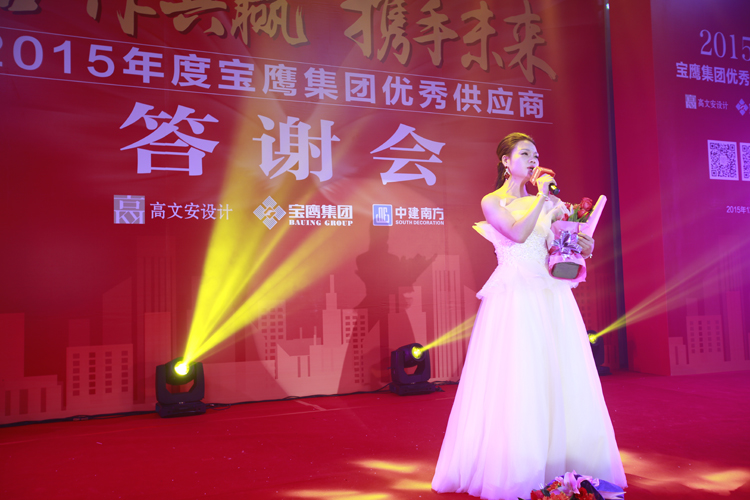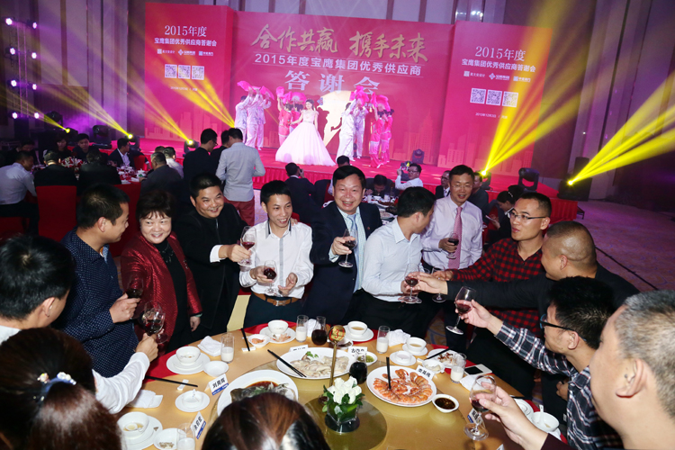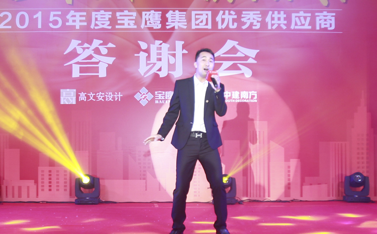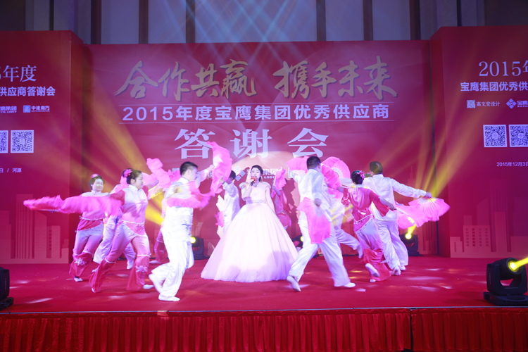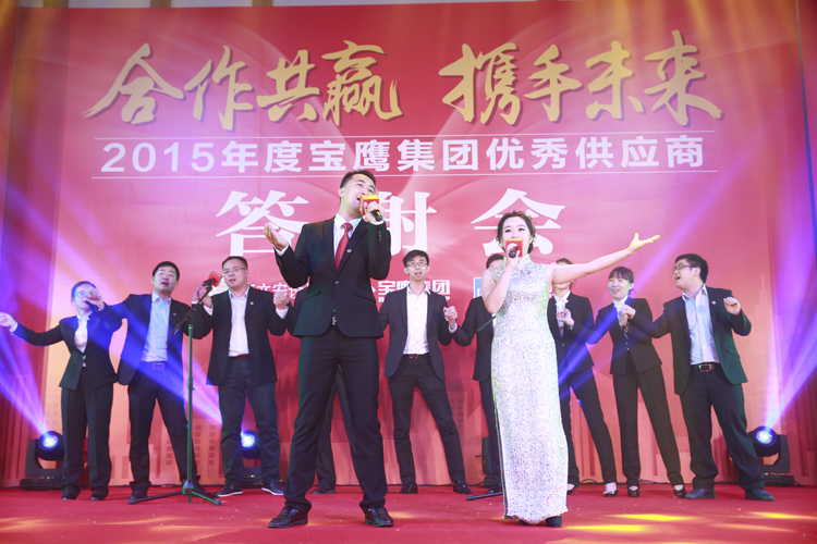 在諸位供應(yīng)商與三方領(lǐng)導(dǎo)一起舉杯,滿飲此杯時(shí),2015寶鷹集團(tuán)優(yōu)秀供應(yīng)商答謝會(huì)晚宴正式開(kāi)始。一曲曲深情的歌兒唱出溫馨的祝福,一支支優(yōu)美的舞蹈跳出一個(gè)前程錦繡。熱鬧非凡的舞獅表演象征著紅紅火火,《今宵如此美麗》的曼妙歌聲讓諸位嘉賓流連忘返,《相親相愛(ài)的一家人》訴說(shuō)著濃濃的情意,《大展宏圖》則傳遞出對(duì)未來(lái)的雄心壯志。參會(huì)嘉賓與諸位領(lǐng)導(dǎo)一邊觀賞著精彩的節(jié)目,一邊為友誼和新的希望舉杯,現(xiàn)場(chǎng)沉浸在一派活潑熱鬧的氣氛中。值得一提的是,本次供應(yīng)商答謝會(huì)加入了嘉賓點(diǎn)歌環(huán)節(jié),諸位嘉賓分別用歌唱表達(dá)著自己心中的喜悅,亦為此次供應(yīng)商答謝會(huì)畫(huà)上了圓滿的句號(hào)。