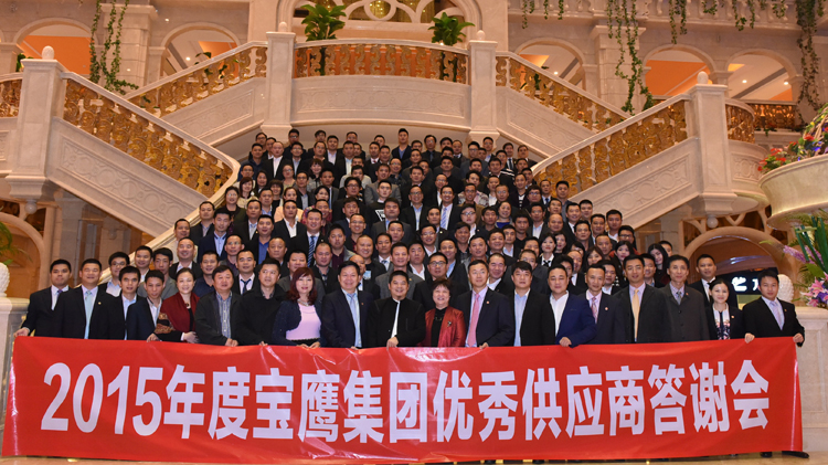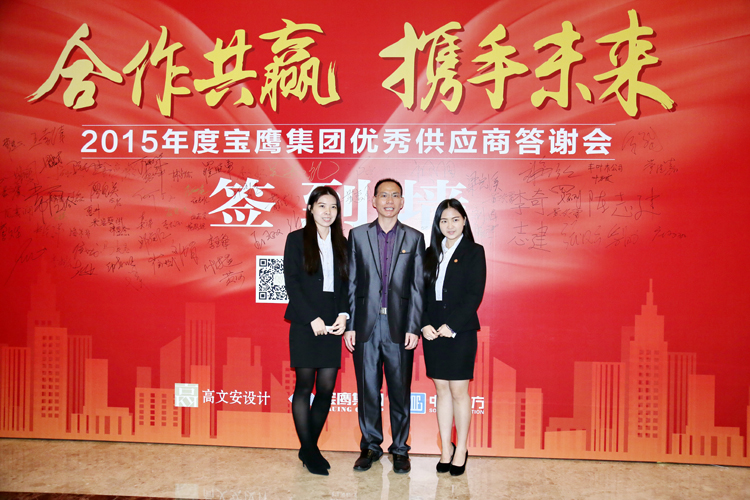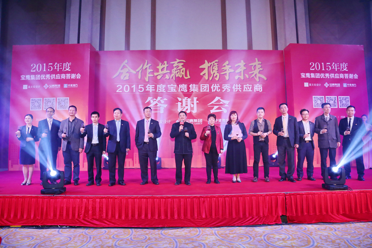 答謝會(huì)上,寶鷹集團(tuán)總裁成湘文對(duì)各位優(yōu)秀供應(yīng)商代表的到來(lái)表示熱烈歡迎,并向在2015年對(duì)寶鷹集團(tuán)、中建南方和高文安設(shè)計(jì)的事業(yè)給予莫大支持和幫助的各位朋友表示衷心的感謝。成湘文總裁說(shuō):寶鷹集團(tuán)在2015年里延續(xù)2014年的穩(wěn)健步伐,在提升主營(yíng)業(yè)務(wù)的同時(shí)不斷打開(kāi)格局,以更積極的姿態(tài)踐行“互聯(lián)網(wǎng)+”戰(zhàn)略和“一帶一路”戰(zhàn)略。2015年,寶鷹集團(tuán)順勢(shì)而為,成功牽手全球知名室內(nèi)設(shè)計(jì)品牌——高文安設(shè)計(jì),打響了“以設(shè)計(jì)帶動(dòng)施工”發(fā)展戰(zhàn)略。2015年,寶鷹集團(tuán)把握大勢(shì),果敢入股二維碼行業(yè)領(lǐng)導(dǎo)者——武漢矽感,再次深耕“互聯(lián)網(wǎng)+”行業(yè)。2015年,寶鷹集團(tuán)文化開(kāi)路,奮翅海外,在“一帶一路”上愈行愈遠(yuǎn)。斐然的成績(jī)離不開(kāi)集團(tuán)領(lǐng)導(dǎo)班子的正確決策,離不開(kāi)每一位寶鷹人的不竭努力,更離不開(kāi)各位供應(yīng)商對(duì)寶鷹集團(tuán)日繼一日的大力支持。我們未來(lái)還有著更廣闊的合作深度和合作層次,寶鷹集團(tuán)將一直堅(jiān)持誠(chéng)信經(jīng)營(yíng),共贏經(jīng)商的合作理念,高度重視合作伙伴利益,在新時(shí)代下繼續(xù)引領(lǐng)行業(yè),創(chuàng)造輝煌。