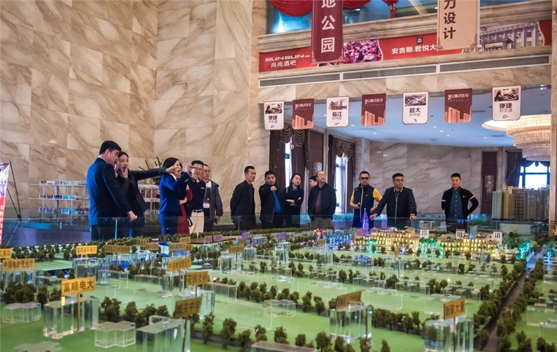 ▲古樸副總裁在項目建設(shè)方的陪同下參觀瑞祥商貿(mào)城售樓中心(右八:古樸副總裁;右七:四川紅瑞祥置業(yè)有限公司總經(jīng)理楊立強(qiáng)。)