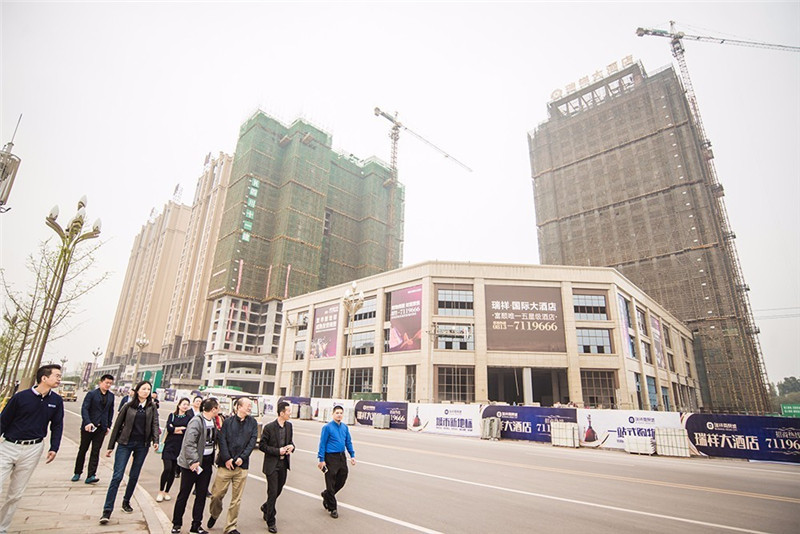 古樸副總裁在考察中首先在四川紅瑞祥置業(yè)有限公司總經(jīng)理楊立強(qiáng)等領(lǐng)導(dǎo)的陪同下參觀了瑞祥商貿(mào)城售樓中心,詳細(xì)了解了瑞祥商貿(mào)城的建設(shè)概況和瑞祥大酒店的項目情況,并與廣州紅谷集團(tuán)董事長、四川紅瑞祥置業(yè)有限公司董事長鄧申偉進(jìn)行了深入座談交流。