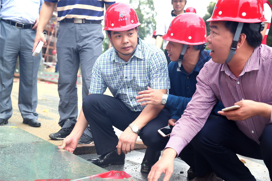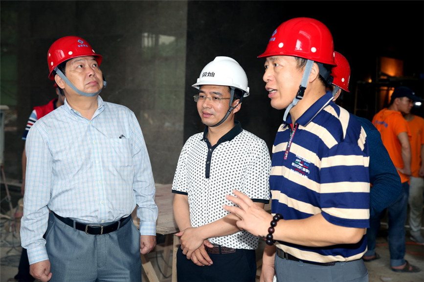 隨后,在寶鷹集團項目部工作人員的陪同下,雙方來到施工現(xiàn)場,就工程建設的進度問題仔細核對。在由寶鷹集團負責施工的裙樓展示區(qū)幕墻工程施工現(xiàn)場,古少波董事長及寶鷹集團眾高管就施工工藝、所用材料、項目施工難點等情況向項目部同事一一仔細詢問,并現(xiàn)場檢查安全施工事項,叮囑現(xiàn)場施工人員嚴把安全生產關。
