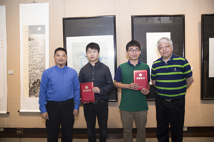 中國(guó)畫學(xué)會(huì)常務(wù)理事、廣州美術(shù)學(xué)院教授方楚雄為榮獲國(guó)畫類二等獎(jiǎng)的馬圣超頒獎(jiǎng)。廣東省美術(shù)家協(xié)會(huì)理事、廣州大學(xué)松田學(xué)院院長(zhǎng)盧小根為榮獲國(guó)畫類二等獎(jiǎng)的李國(guó)開頒獎(jiǎng)。
