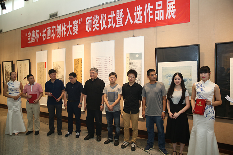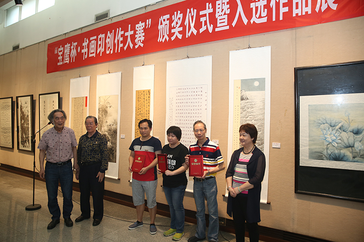 2015年4月,“寶鷹杯?書畫印創(chuàng)作大賽”在廣東廣播電視臺(tái)舉行了啟動(dòng)儀式,此后,大賽相繼收到了來自國(guó)內(nèi)各地、香港、澳門、臺(tái)灣以及美國(guó)、印尼等書畫印愛好者的大量來稿。截稿后,由北京、浙江、臺(tái)灣、香港及廣東本省共20位著名書畫家、篆刻家對(duì)參賽作品進(jìn)行了嚴(yán)格的初評(píng)和終評(píng),評(píng)選出國(guó)畫、書法、篆刻三大類獲獎(jiǎng)作品及入選作品共計(jì)92件,各項(xiàng)獎(jiǎng)項(xiàng)、獎(jiǎng)金至此“名花有主”。