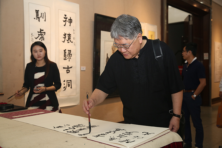 中國(guó)美術(shù)家協(xié)會(huì)副主席、廣東省文聯(lián)主席、廣東美術(shù)家協(xié)會(huì)主席、廣東畫院院長(zhǎng)、著名畫家許欽松在致辭中說,大賽讓人欣慰,通過大賽的成果來看,年輕后輩成長(zhǎng)較快,預(yù)示著書畫印后備力量?jī)?chǔ)備雄厚,這說明我們更應(yīng)該有文藝自信,當(dāng)下,社會(huì)正應(yīng)該培養(yǎng)更多的中青年藝術(shù)家,當(dāng)然,這種推動(dòng)絕不是僅僅依靠文聯(lián)、協(xié)會(huì)等各類組織來承擔(dān)的,還需要社會(huì)力量的參與,尤其是企業(yè)、媒體,在推動(dòng)中起著不可替代的作用,多種力量共同發(fā)力,讓傳承文藝成為一種民眾行為,廣東如果擁有這股力量,便可以有更多的文化自信。