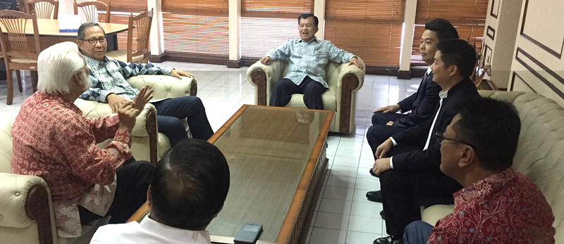 ▲卡拉副總統(tǒng)接見印尼國際日報董事長熊德龍、寶鷹股份董事長古少波、寶鷹集團副總裁古樸一行