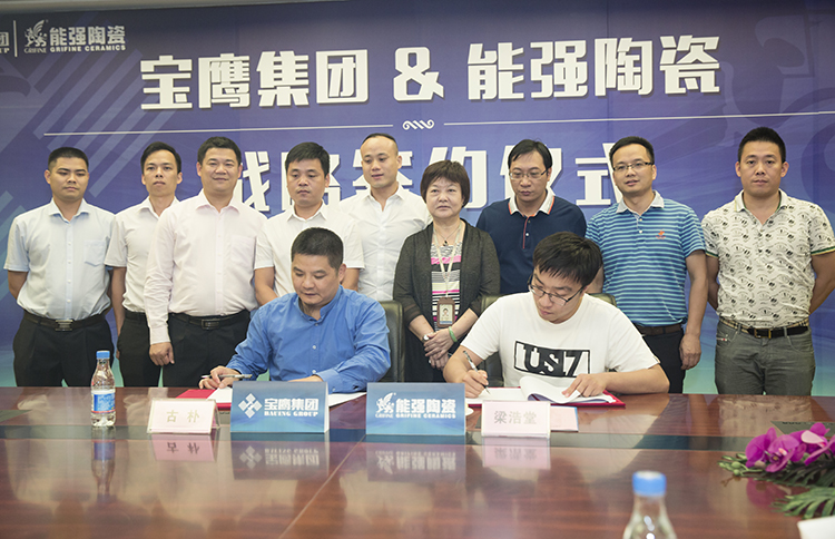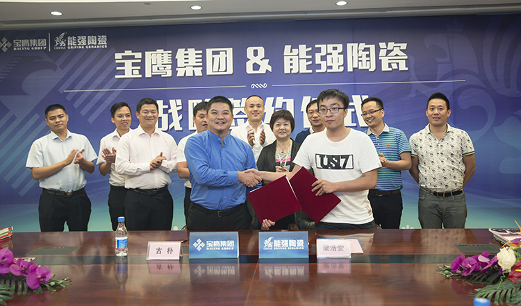 寶鷹集團副總裁古樸與能強陶瓷副總裁梁浩堂正式簽訂合作協(xié)議
