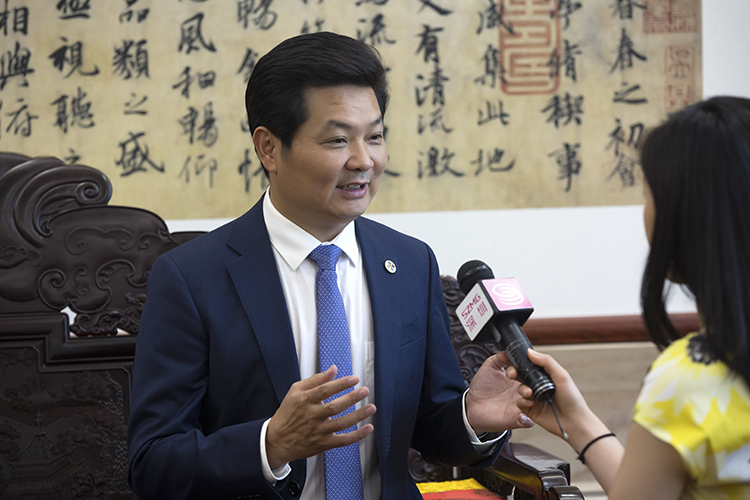寶鷹集團(tuán)董事局主席古少明就開拓國際市場話題與深圳衛(wèi)視記者交流