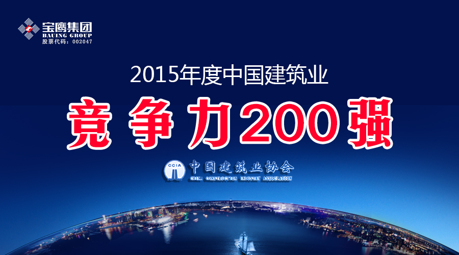 2015年度中國建筑業(yè)雙200強(qiáng)企業(yè)評(píng)價(jià)結(jié)果日前揭曉,寶鷹集團(tuán)入圍競爭力200強(qiáng)企業(yè)。