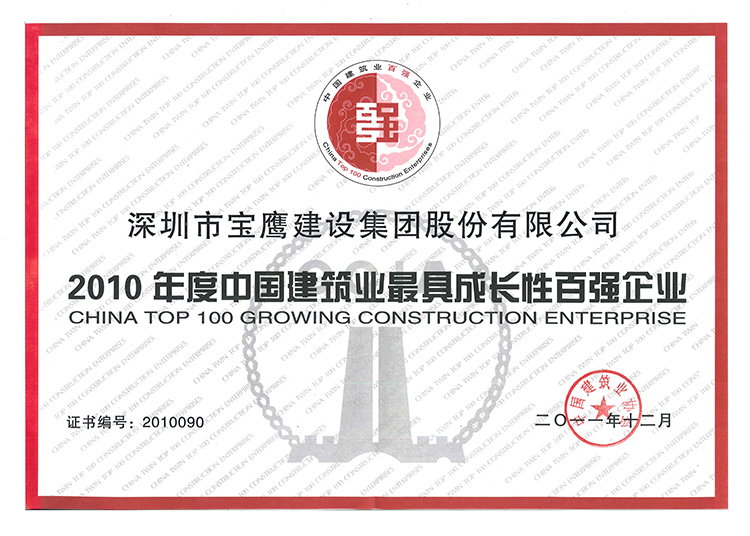 寶鷹集團(tuán)連續(xù)五年榮獲“中國建筑業(yè)最具成長性企業(yè)”榮譽(yù)