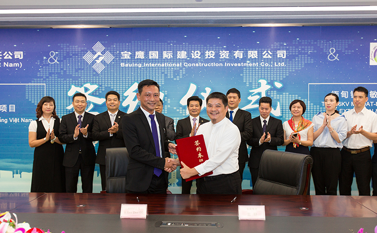 寶鷹集團(tuán)副總裁、寶鷹國(guó)際建設(shè)投資有限公司董事長(zhǎng)古樸與華西集團(tuán)越南公司總經(jīng)理羅征祥簽訂合同