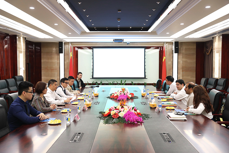 薩阿德一行首先參觀了寶鷹集團(tuán)辦公環(huán)境和寶鷹美術(shù)館,隨后雙方進(jìn)行座談。寶鷹集團(tuán)副總裁古樸對薩阿德先生一行的到來表示歡迎并向大家介紹了寶鷹集團(tuán)的發(fā)展歷程和當(dāng)下的業(yè)務(wù)布局,著重介紹了近幾年來在國家“一帶一路”戰(zhàn)略指引下,寶鷹集團(tuán)規(guī)劃海外戰(zhàn)略、征戰(zhàn)海外的情況。