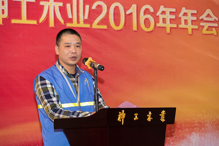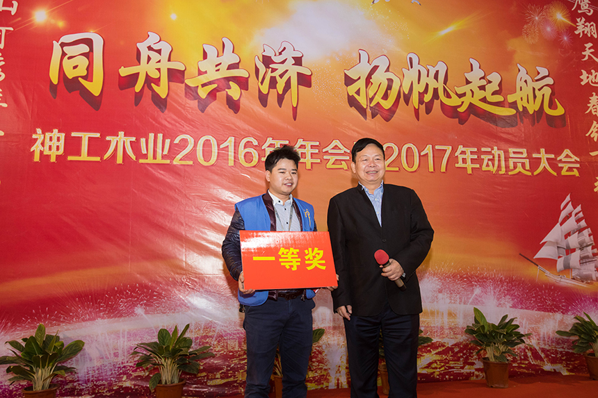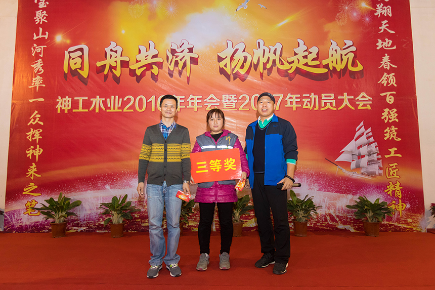 神工木業(yè)生產(chǎn)部經(jīng)理余程志在年會上表示,2017年神工木業(yè)將從工藝、質(zhì)量上尋求突破,搞好安全生產(chǎn),強力塑造神工木業(yè)品牌,并寄予神工木業(yè)員工再接再厲,在新的一年中作出更加輝煌的成績。