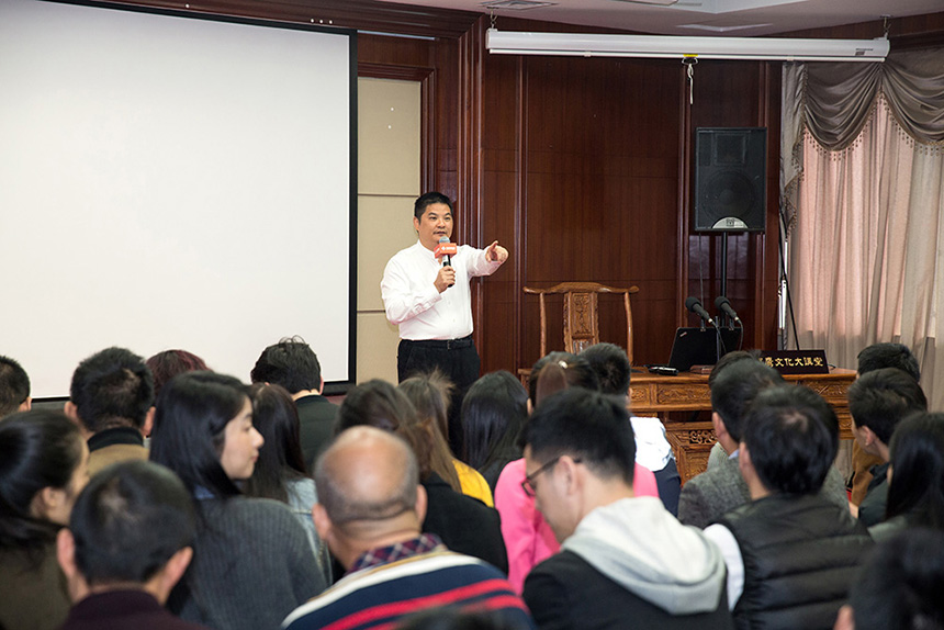 ▲寶鷹集團(tuán)總裁成湘文講授“工程法”